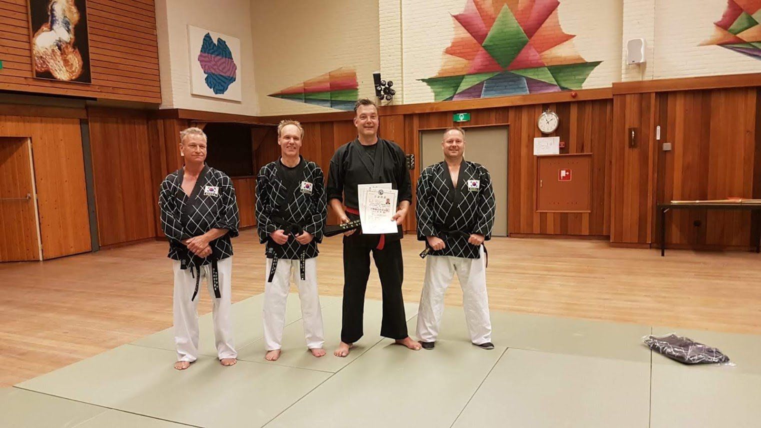 Wij feliciteren onze Hwarangdo vrienden met het behalen van de volgende graad, na een succesvol afgelegd examen. Dick bedankt voor je assistentie met het examen op zondag 16 juni 2019.