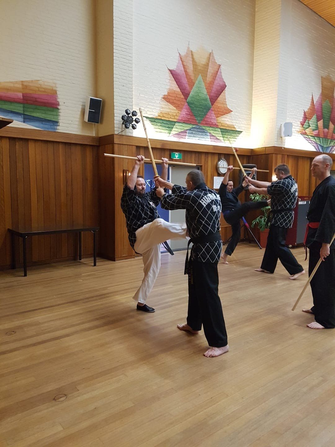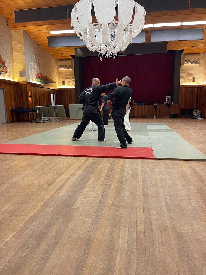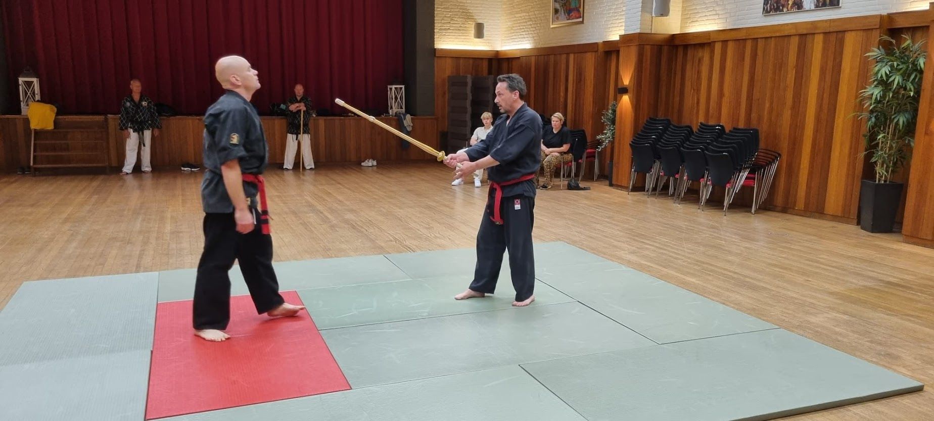 Rob heeft een aantal sessies met stok - en zwaardtechnieken met de groep getraind.
