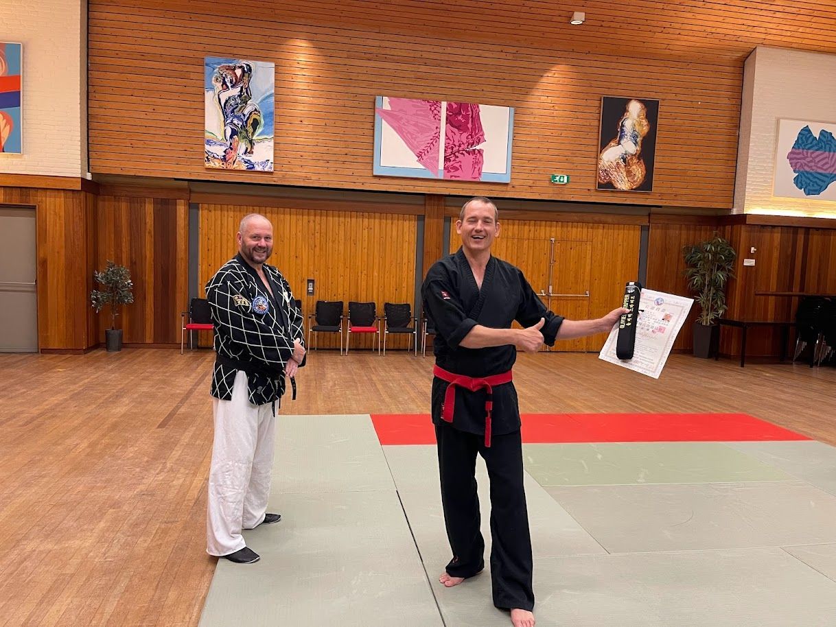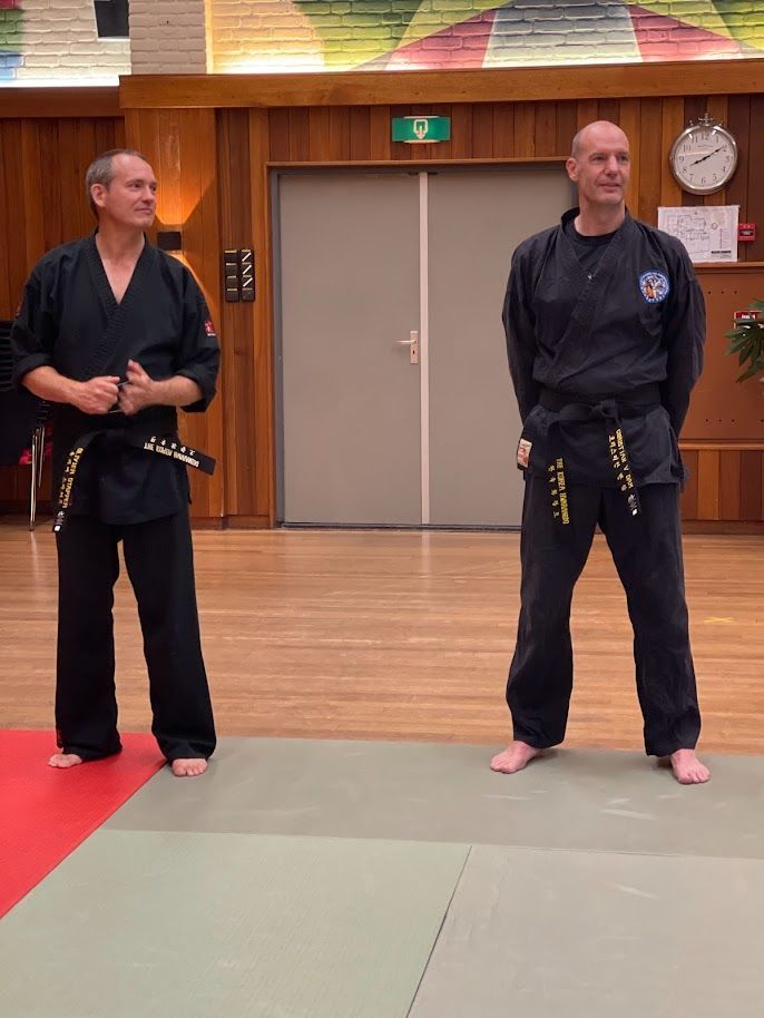 Remco en Guido zijn beiden ruim geslaagd voor de eerste dan. Beiden hebben een achtergrond in andere gevechtssporten en zij hierdoor veelzijdig en compleet in hun technieken en stijl!