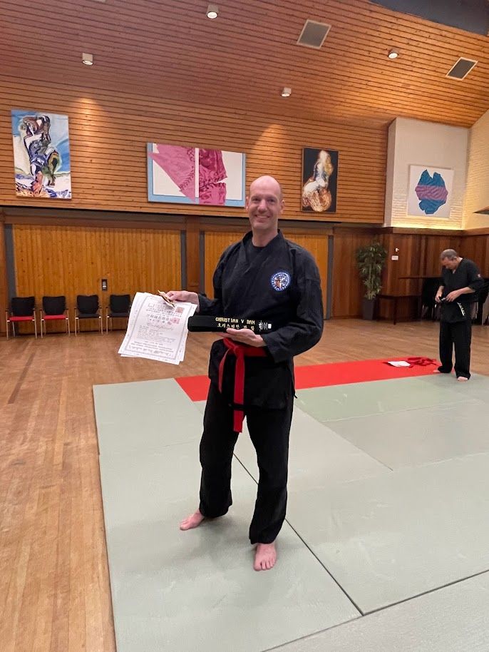 Wij feliciteren Remco, met het behalen van de zwarte band, 1e Dan in Hwarangdo en Hapkido. Remco heeft op alle onderdelen zeer goed gepresteerd en laten zien dat hij de vereiste technieken zeer goed beheerst. Helaas kon Remco niet mee naar Korea maar heeft kort daarna het examen afgelegd en aan de eisen voldaan volgens de Korea Hwarangdo Association.